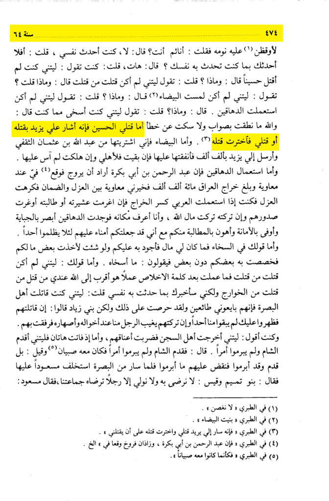 أَمَّا قَتْلِي الْحُسَيْنَ فَإِنَّهُ أَشَارَ إِلَيَّ يَزِيدُ بِقَتْلِهِ أَوْ قَتْلِي فَاخْتَرْتُ قَتْلَهُ